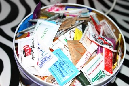Jaka zbira servirne sladkorčke. Ja, v bistvu neka neumnost, ki sem jo sprožila jaz, kajti sem strašna kofetarica in Jako je bilo treba nekako zmotivirati, da je z veseljem zavil z nama na kakšno kavico ali dve. Pa sem predlagala, da začne zbirati sladkorčke, ker jih midva itak ne uporabljava za sladkanje kave. In se pošalila, da popijemo toliko kav, da bo za Guinessovo knjigo rekordov. No, in on je zagrabil. 🙂